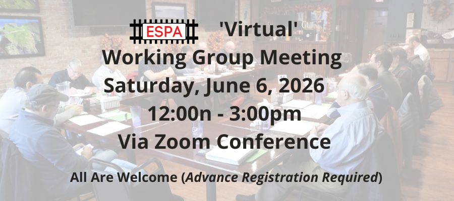There will be an ESPA Working Group Meeting held on Saturday, June 6, 2026, starting at 12:00n & concluding by 3:00pm, via Zoom Conference Call