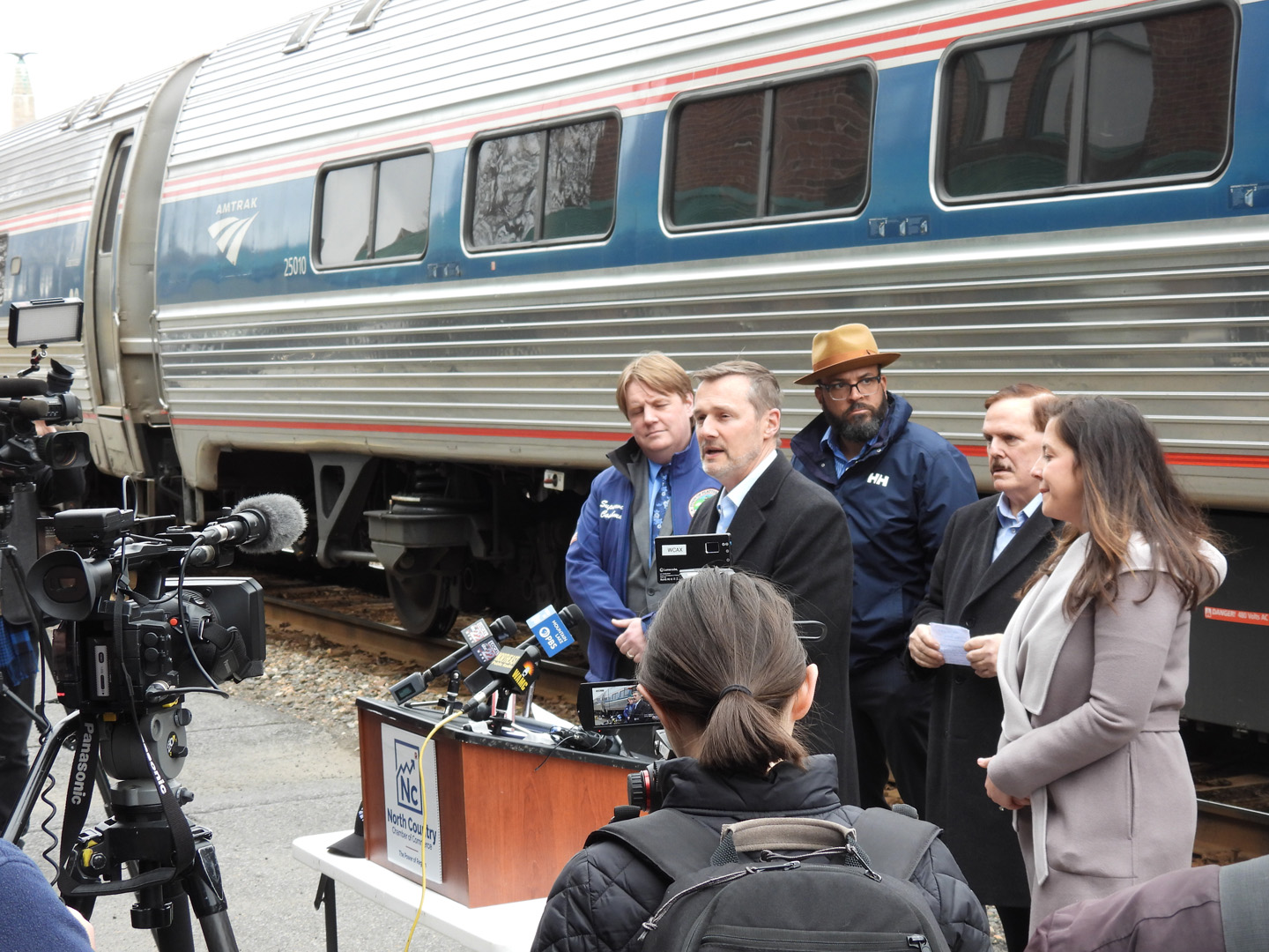 At the historic Plattsburgh Station there was a welcoming event where several people spoke, including: North Country Chamber President Garry Douglas, Congresswoman Elise Stefanik of the 21st district, Plattsburgh Mayor Christopher C. Rosenquest, Amtrak President Roger Harris, and Gary Prophet of ESPA