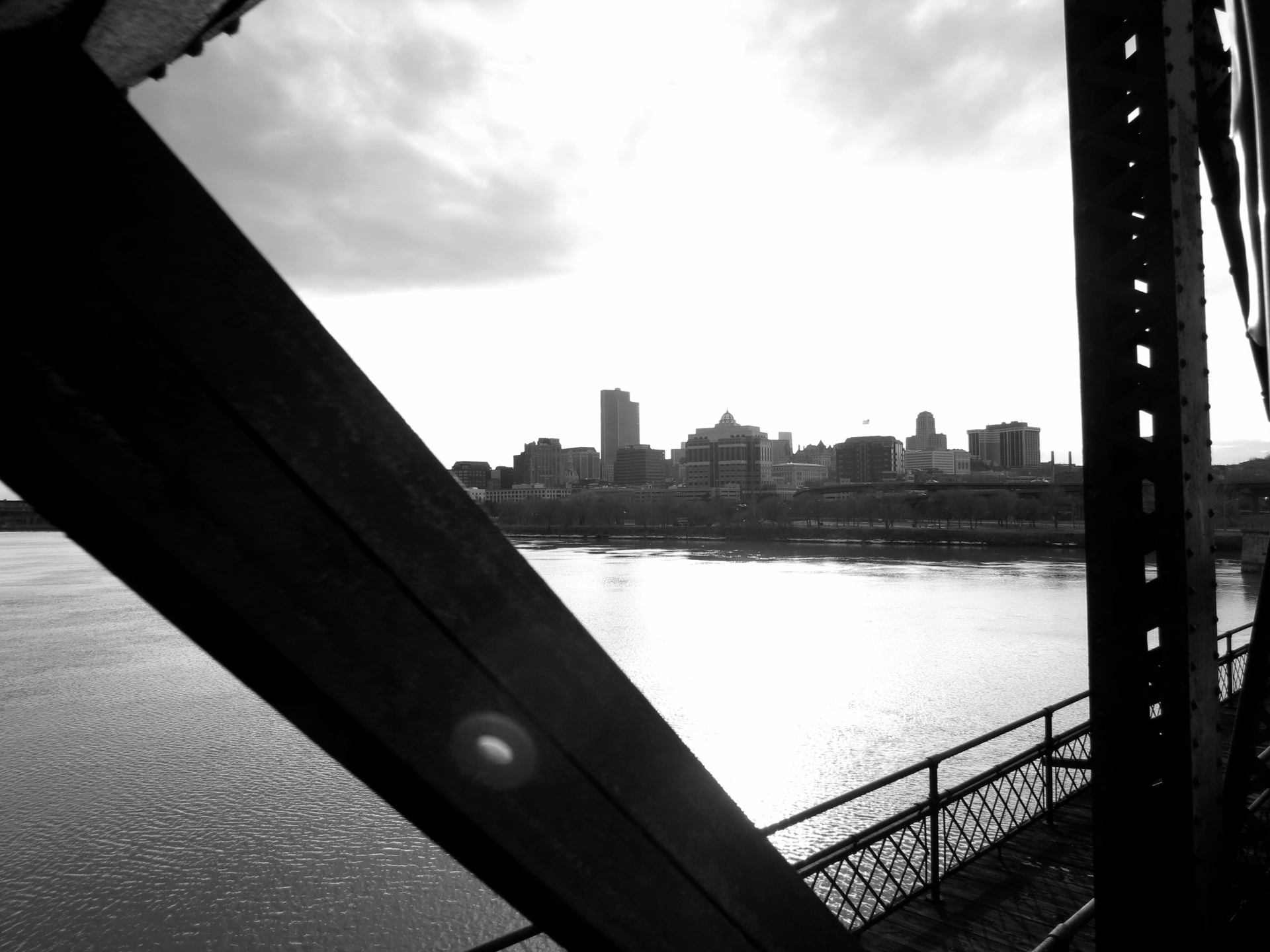 BELOW: The Albany skyline from the LAB bridge, with the closed pedestrian walkway in the foreground.