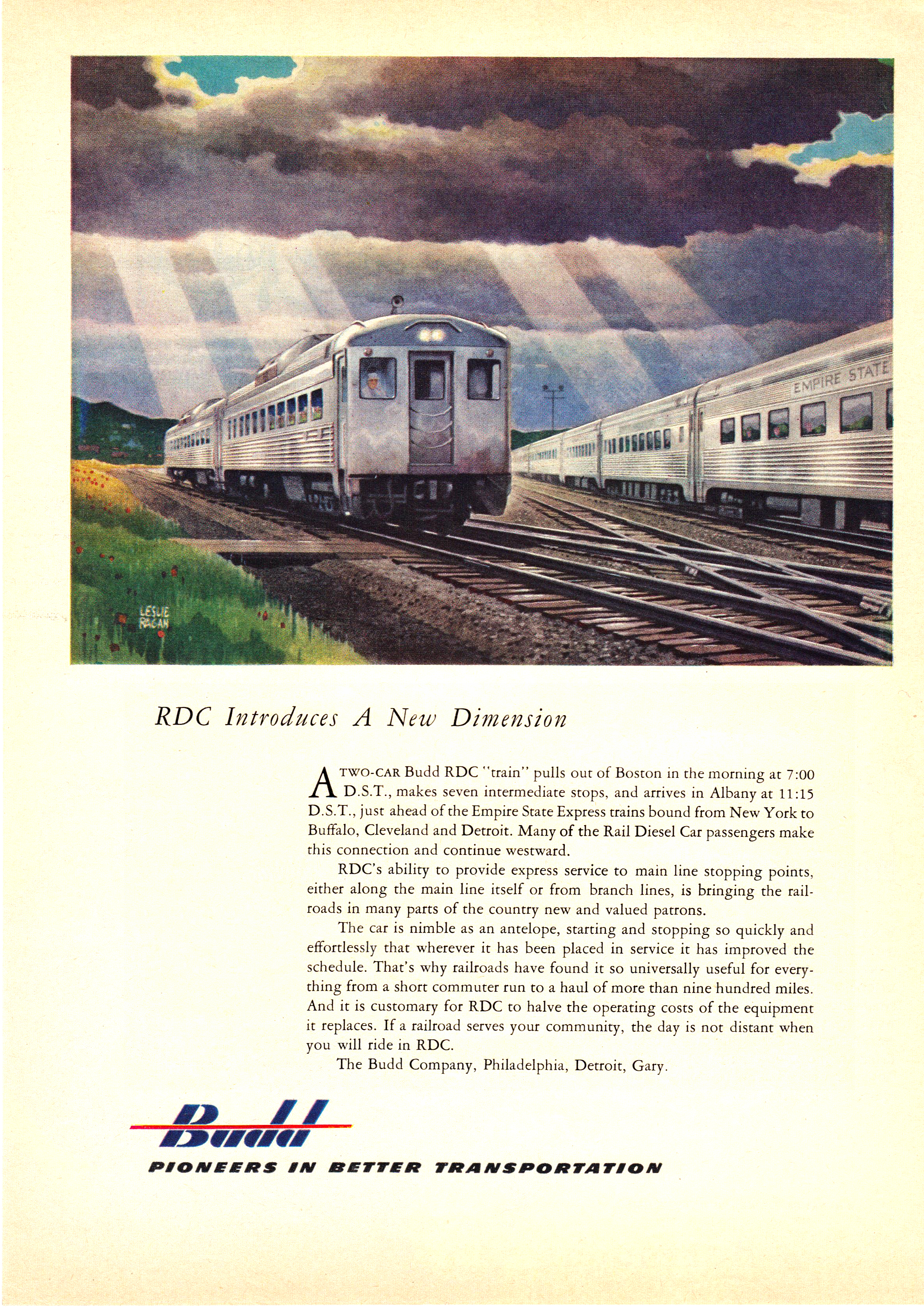 A 1950s print as from the Budd Company featuring the New York Central's Boston-Albany Beeliner service.