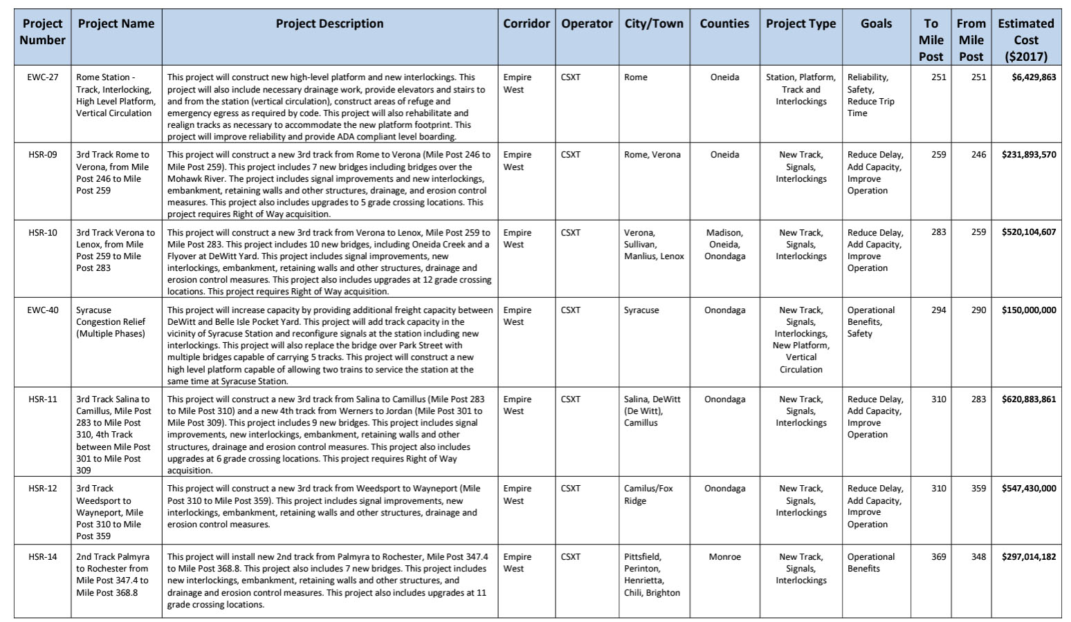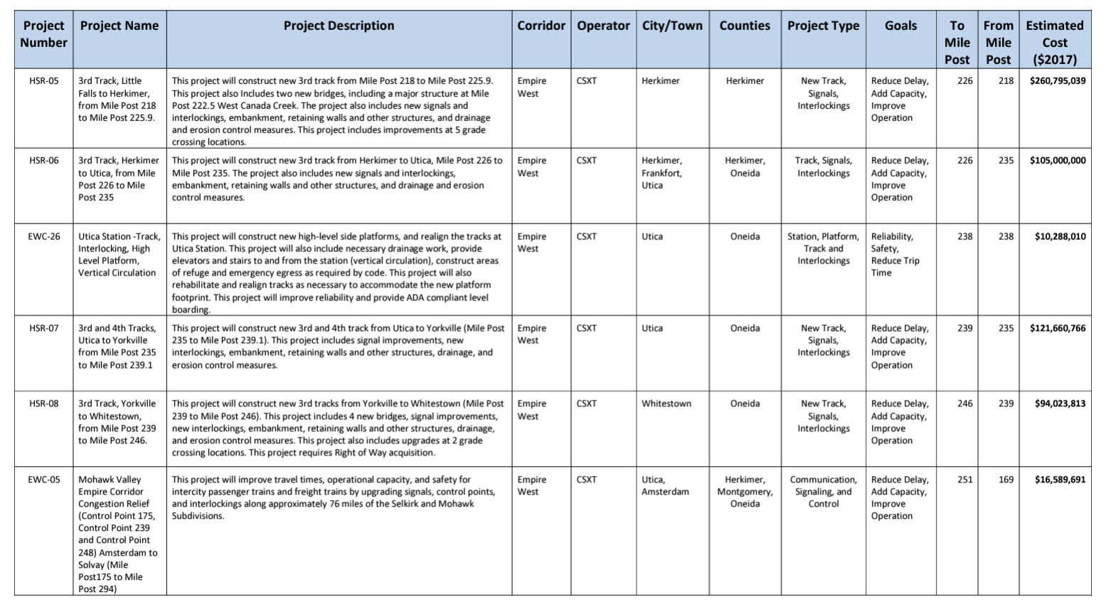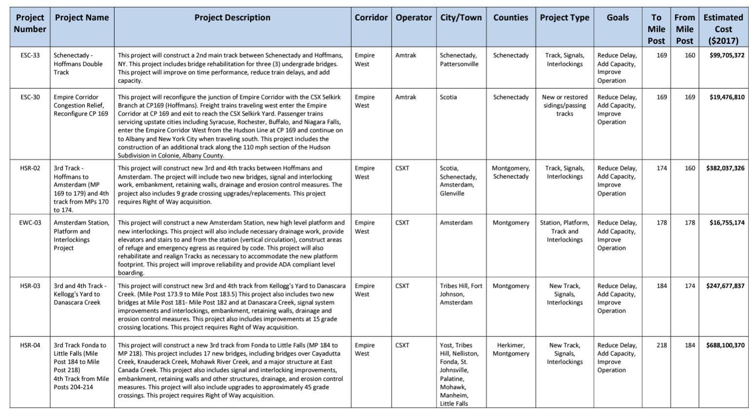 Constructing a new movable Livingston Ave Bridge across the Hudson River between Albany and Rensselaer is the biggest project, at an estimated $400 million. The existing railroad bridge has stone piers dating from the 1860s and a steel superstructure from the early 1900s. Its deteriorated state limits trains to crossing to one at a time at 15-mph, while troubles operating the swing bridge can delay both rail and maritime traffic. A new lift-type bridge would bring the crossing up to modern rail standards, include a new recreational walkway, while reliably accommodating waterborne on the river.