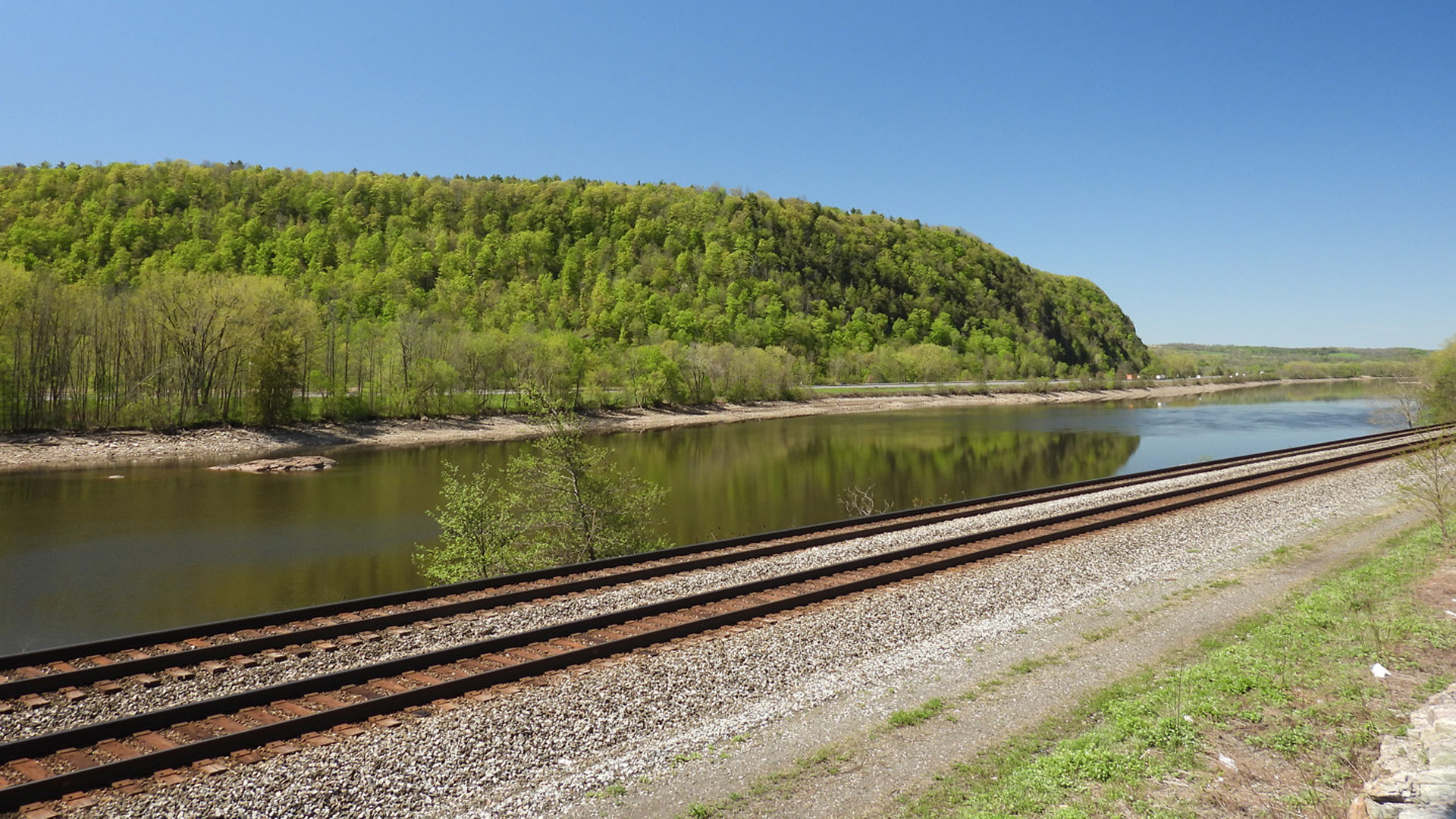 ABOVE: The CSX Mainline alongside the Mohawk River at Lock E10, east of Amsterdam. Passenger Rail is the both a substainable and scenic way to travel, and needs to be better included in New York State's climate planning.