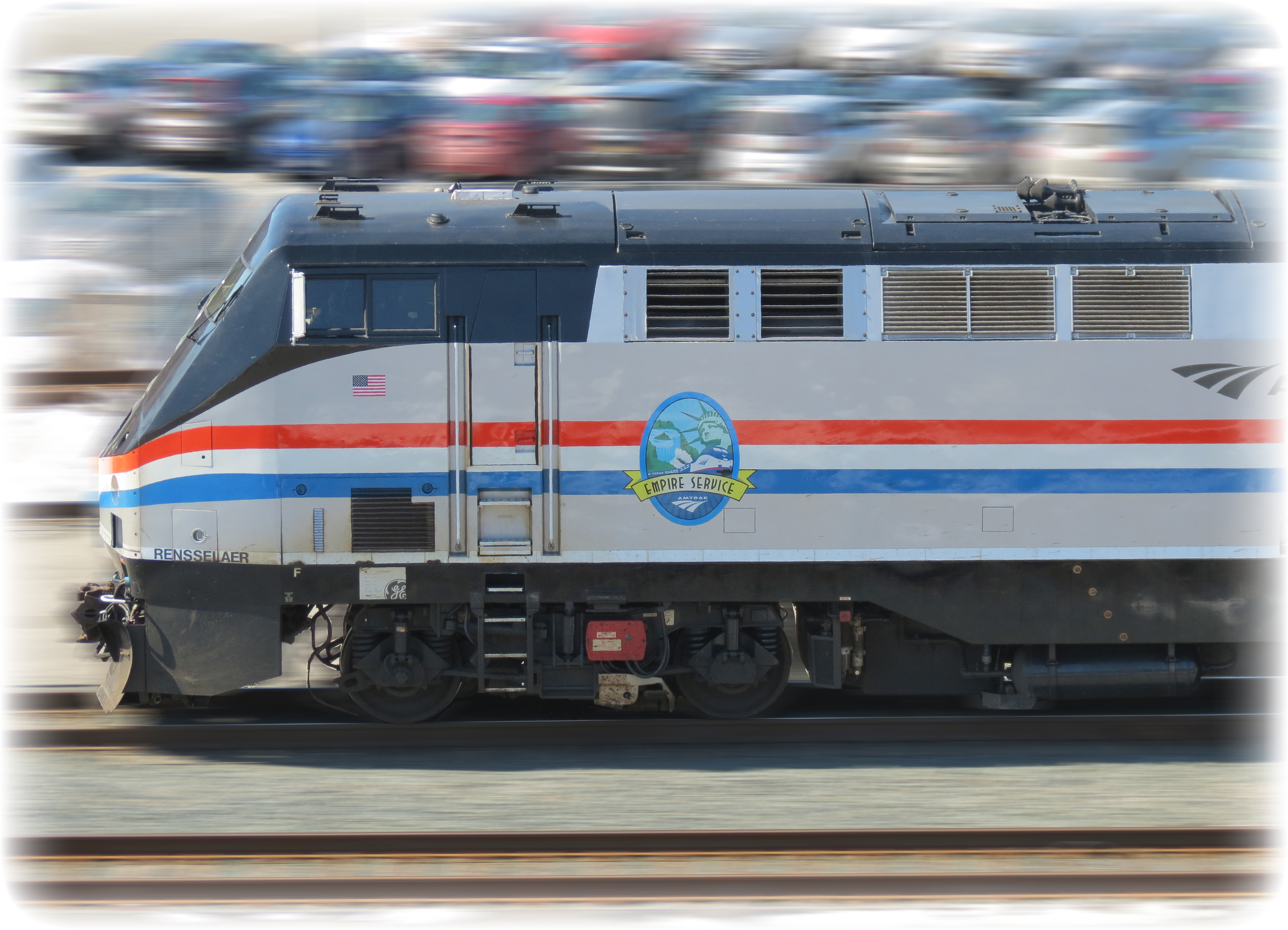 ABOVE: A Empire Service train racing westbound at about 95 MPH in Glenville NY, west of Schenectady on Amtrak's Hudson Line. ALT 90B would extend 90MPH speeds west of the Capital District to Utica, Syracuse, Rochester, and Buffalo on new dedicated "express tracks" for passenger trains.
