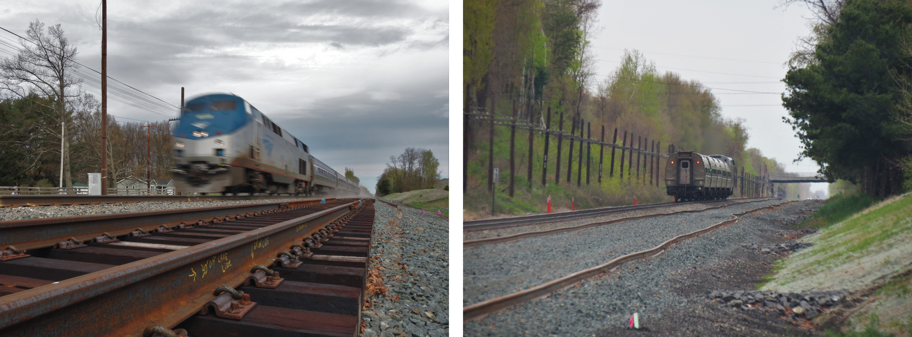 ABOVE: The heavy steel rails of the Hudson Line alongside the Hudson River south of Albany, where 110 MPH speeds would be extented south to Poughkeepsie under the Service Development Plan of ALT 90B.