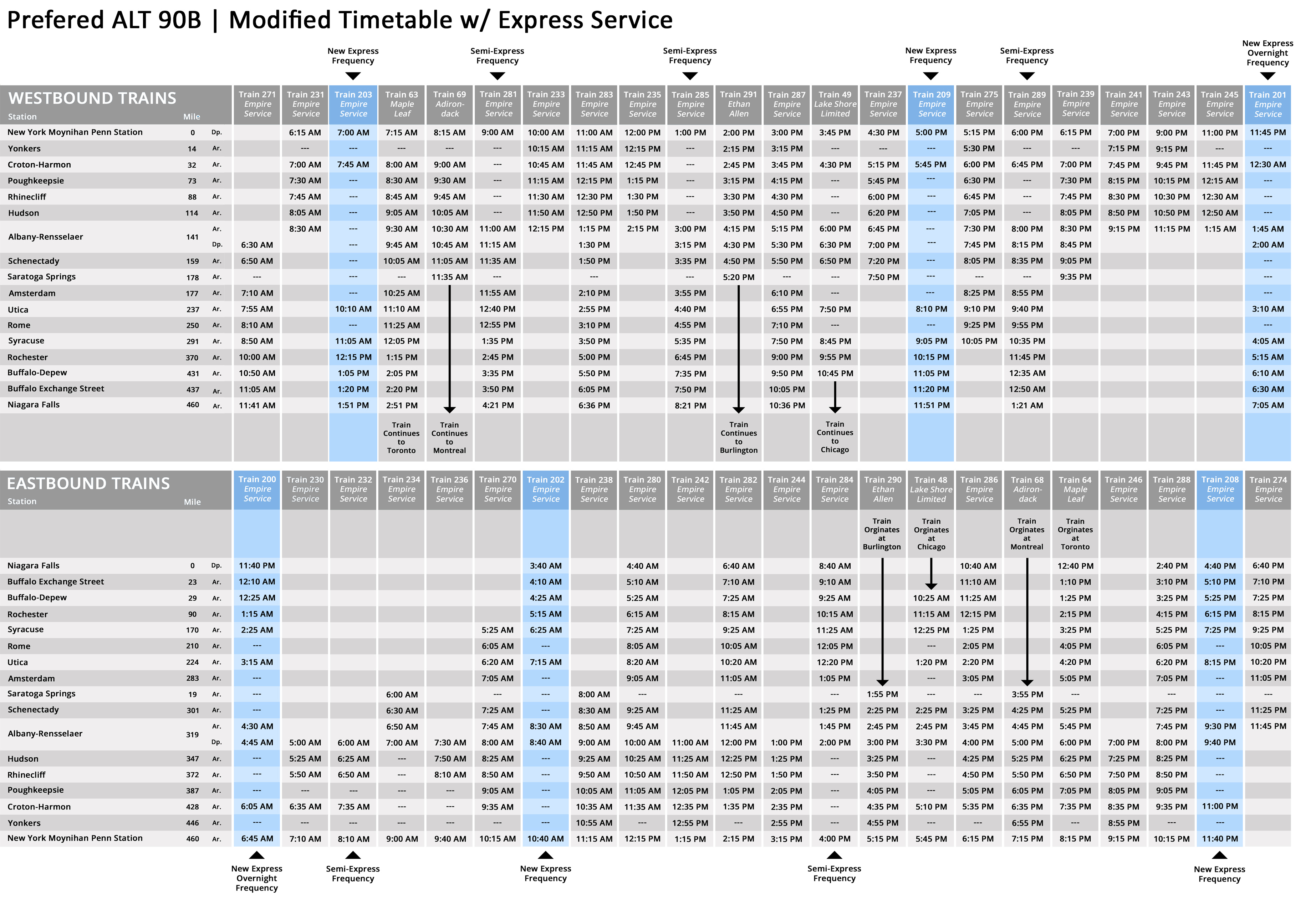 ALT 90B Empire Corridor Modified Express Timetable PDF