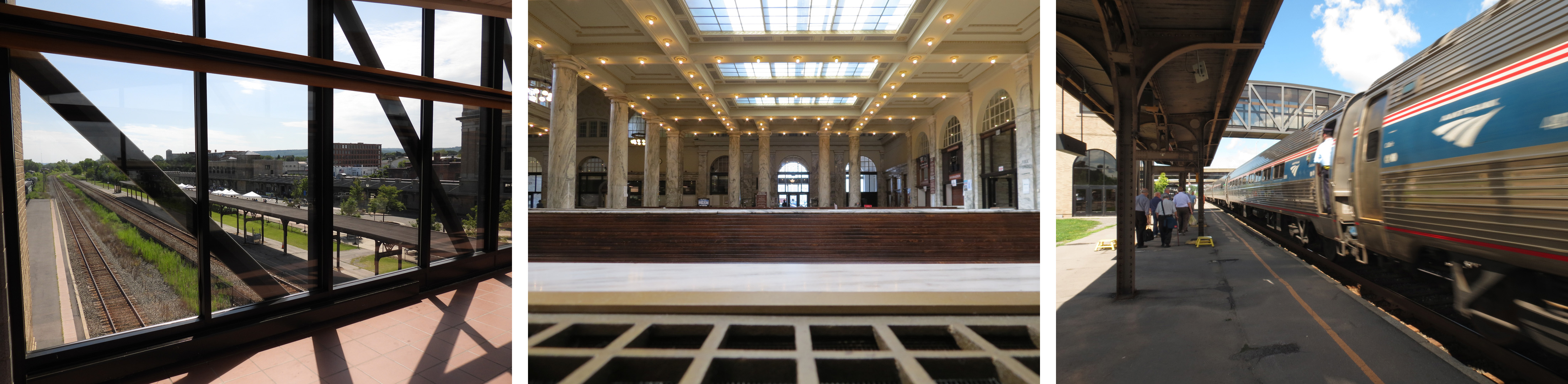 ABOVE: The Albany-Rensselaer Rail Station is Amtrak's ninth-busiest station, the station being served by all Empire Corridor trains, including the Adirondack, Berkshire Flyer, Empire Service, Ethan Allen Express, Lake Shore Limited, and Maple Leaf. A fourth platform track and other track upgrades were undertaken last decaded, funded by grant money from the American Recovery and Reinvestment Act.