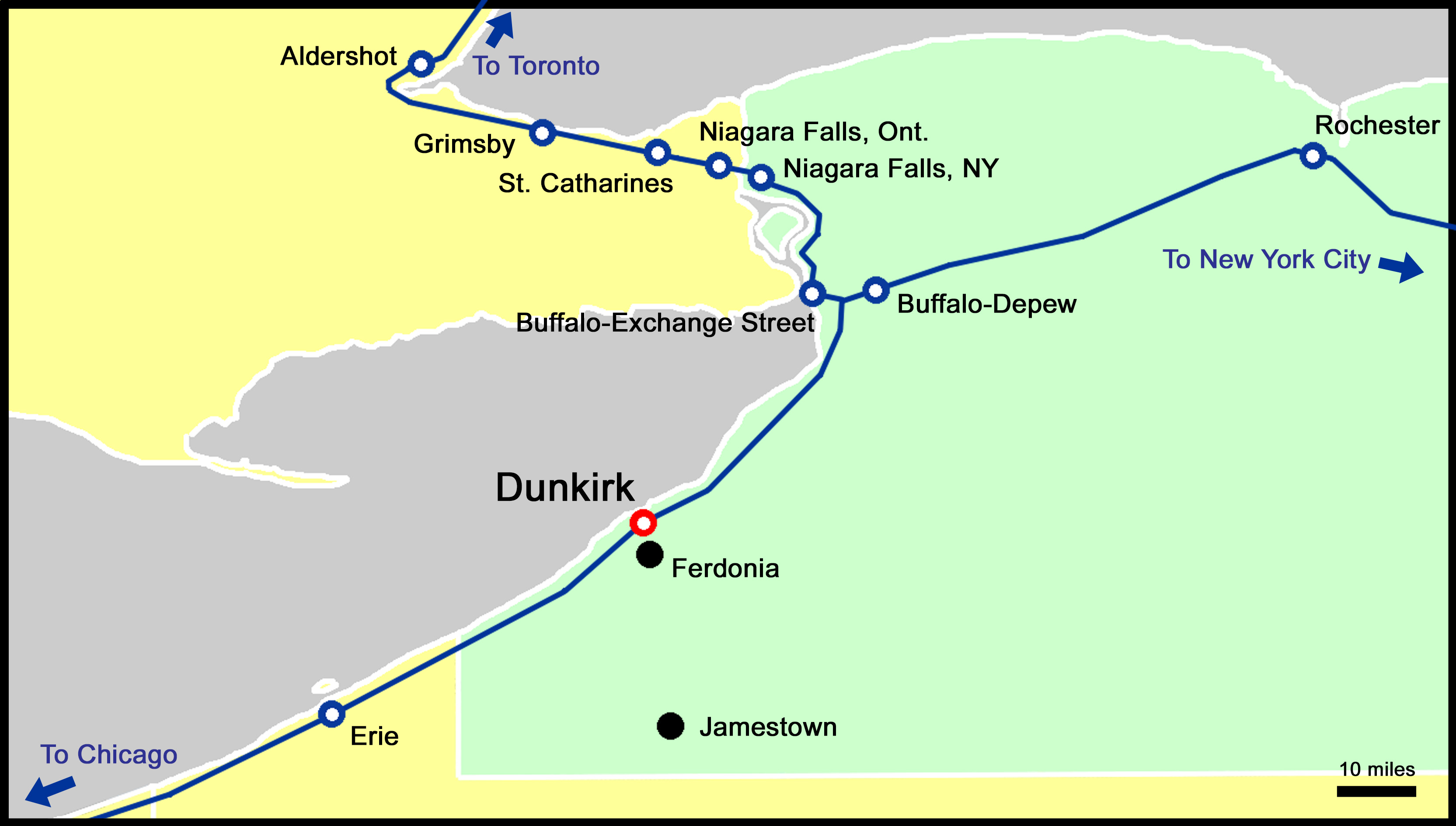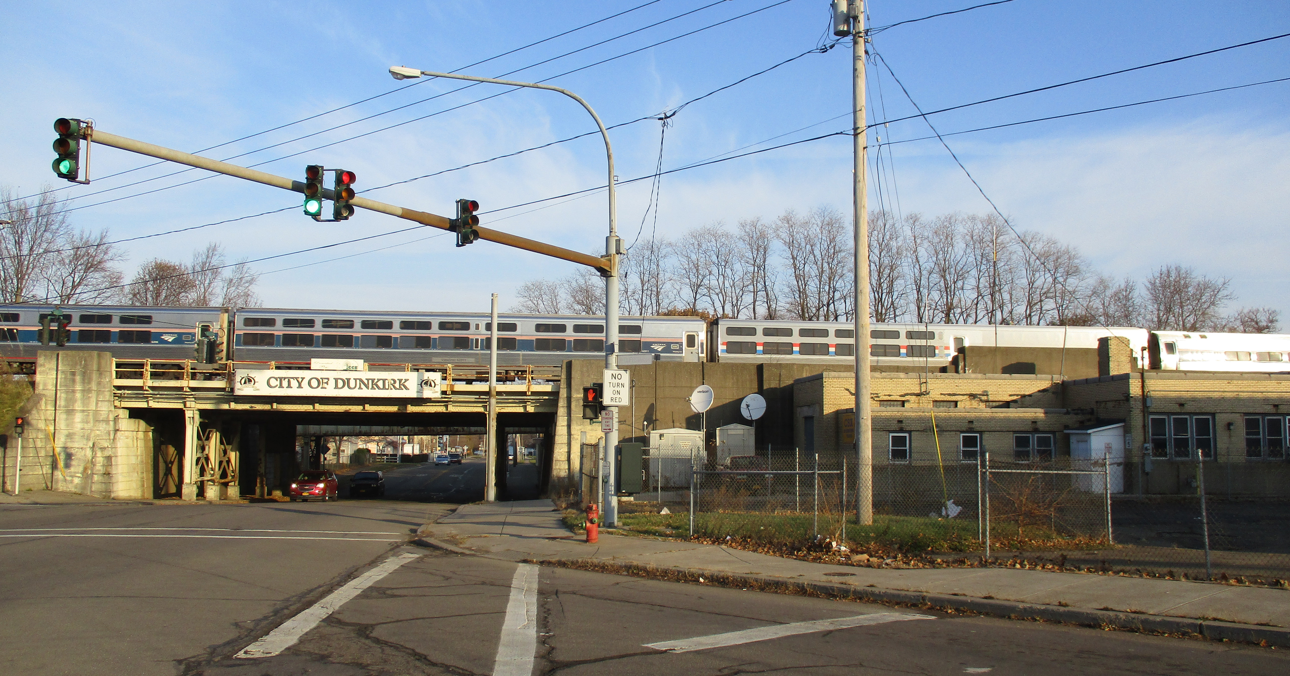 ABOVE: Amtrak's Lake Shore Limited passing the old New York Central Station, over to the right, in Dunkirk, NY. (Photo Roy Davis)