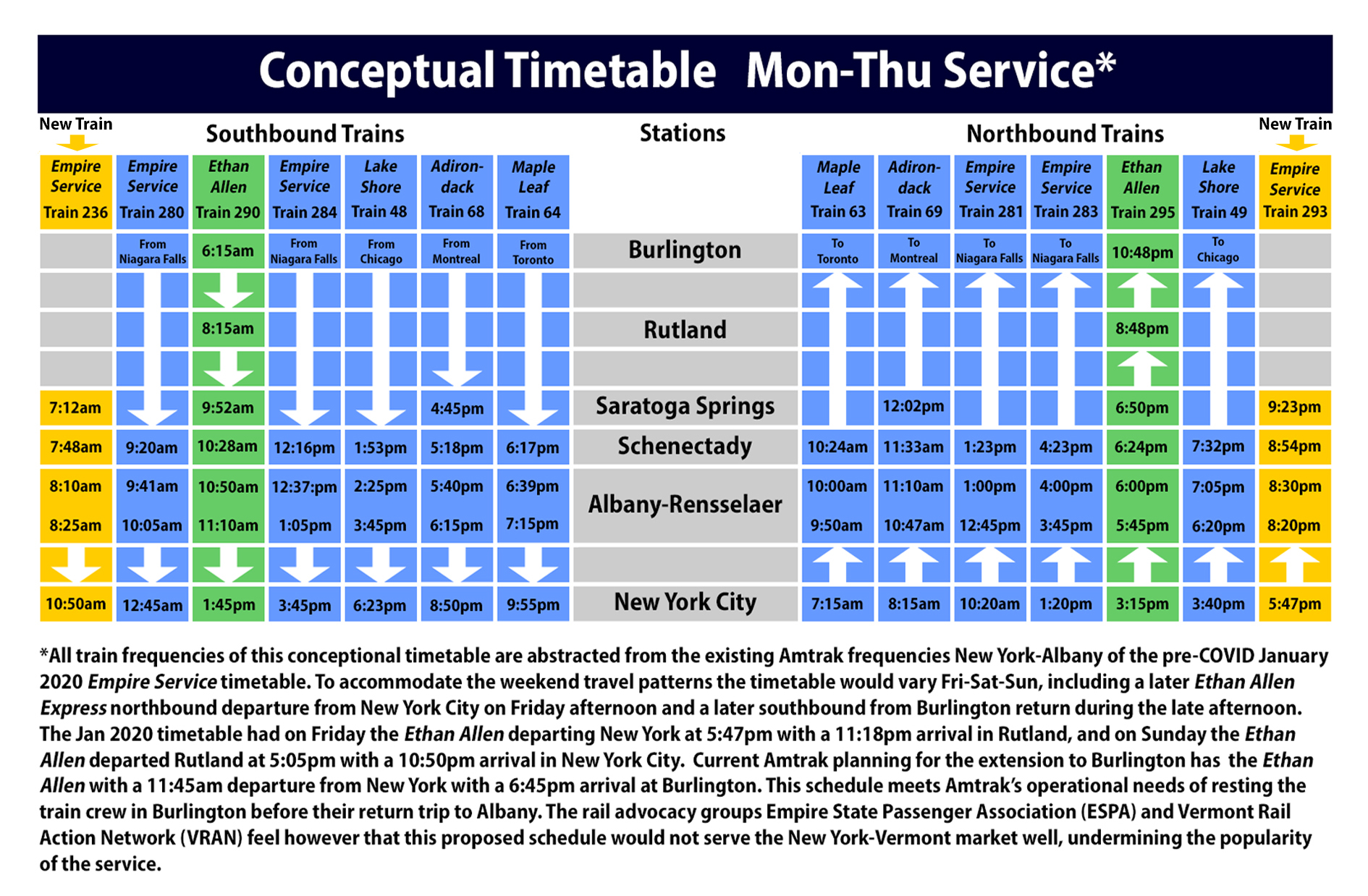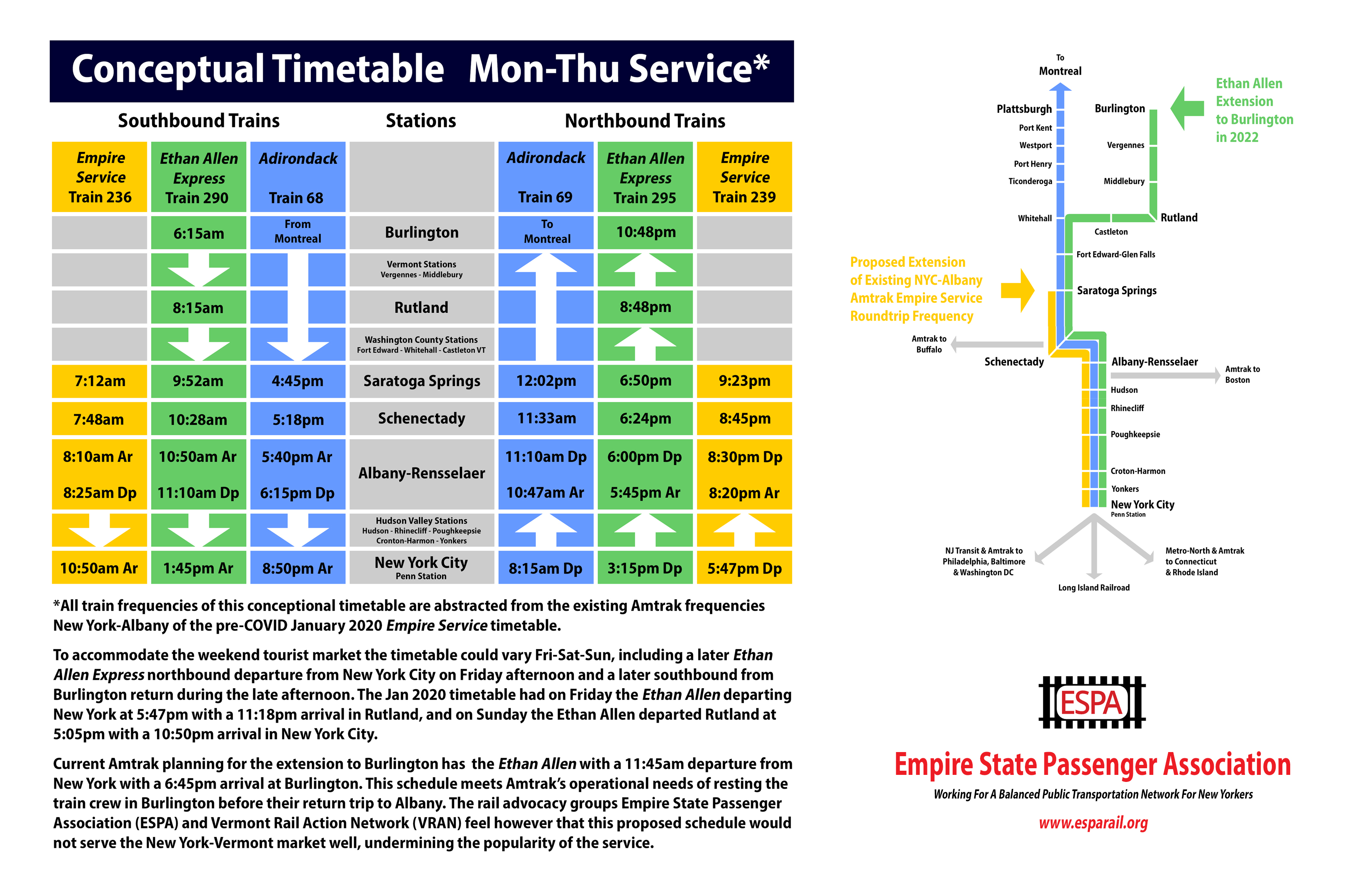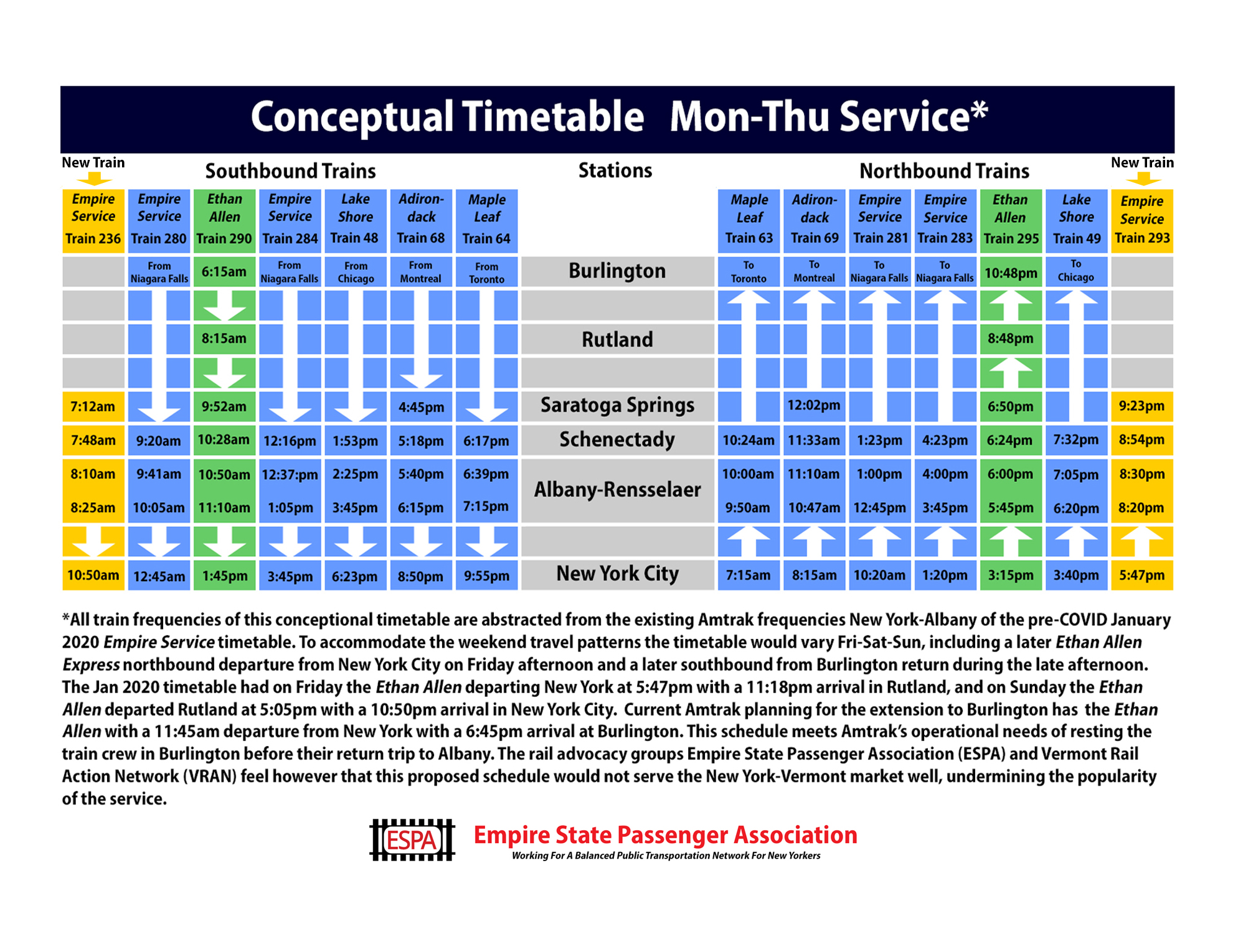 We would also like to congratulate Amtrak and the State of Vermont for their work in advancing the extension of the Ethan Allen train to Burlington.