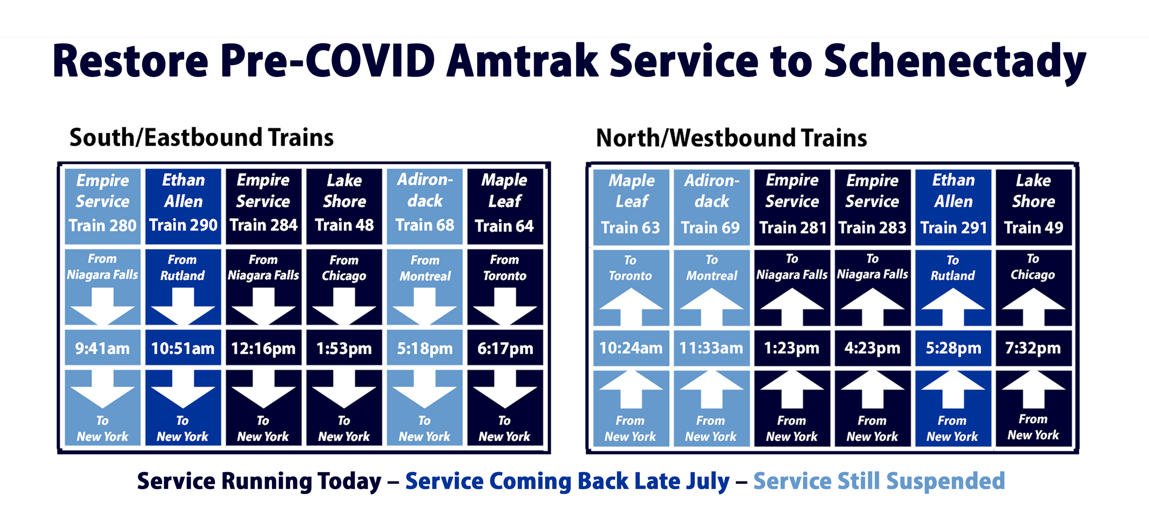 Seeks Restoration of Amtrak’s Empire Corridor Trains to Schenectady, Syracuse and Western New York